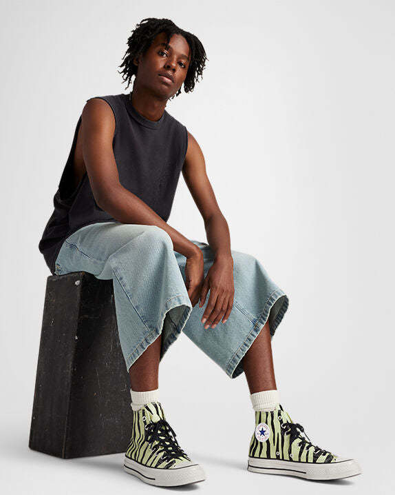 Roaring with a retro animal print, this Chuck 70 demands to be seen anywhere under the sun. But why should the daytime have all the fun? This primal pattern glows in the dark to give you a wild style that never sleeps.